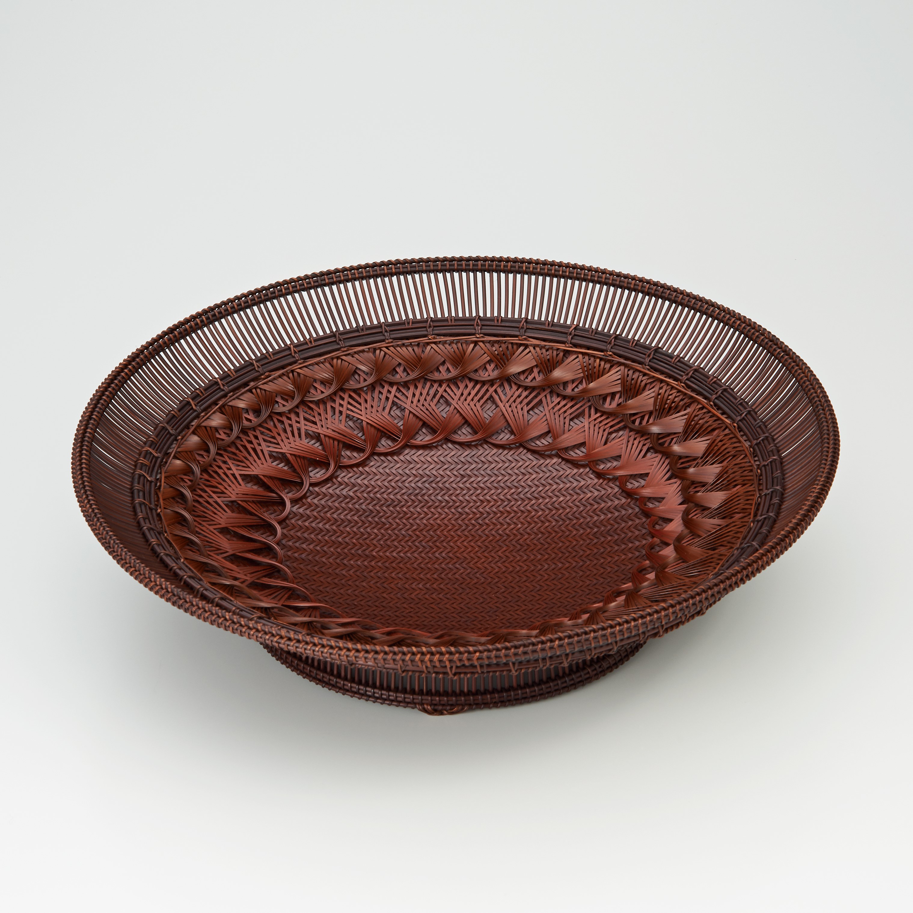 使用竹梯子专用的道具、决定抹布的器和里生铣,用自己制作的竹梯子和虎竹做成木筏网,用皮藤缠上边缘,制作点心盒吧。