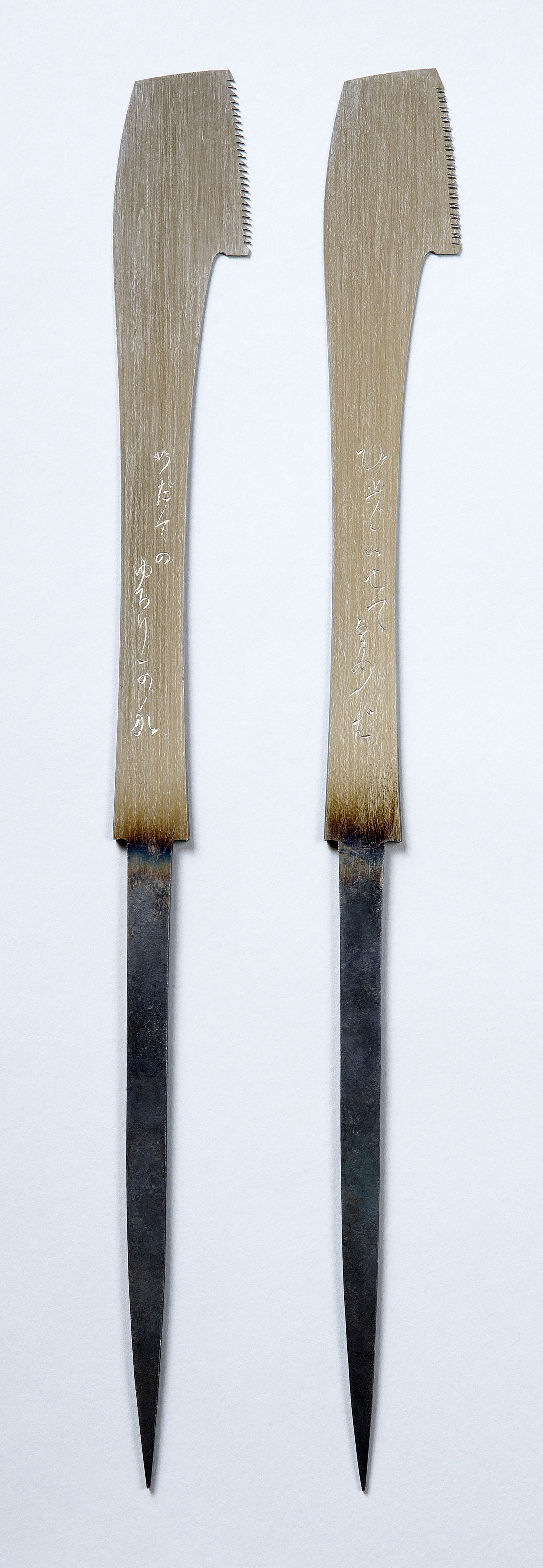 兵库县三木市的锯齿锻造、第二代宫野铁之助(1901~96)是使用玉钢制作锯齿的少数锯齿锻造之一。玉钢是日本自古以来就用榻榻米制铁精炼的钢。江户时代的钢全部都是玉钢,但是随着进口钢材的普及,明治以后渐渐不再使用了。但是,出生于刀匠家族的铁之助,战后也继续使用玉钢制作锯子。那里有以刀匠的技术为基础,能够自由操纵钢的匠的技术。本企划展将介绍其技术和作品。