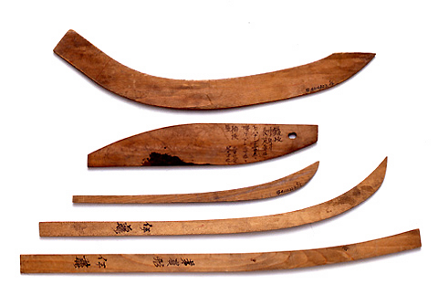 神社建筑屋顶的坡度等,为了方便当时的工作,木匠自己制作的尺子。