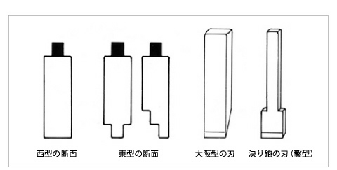 从左边开始粗决刨、底决刨(梳子型)、底决刨(西型)、底决刨(大阪)