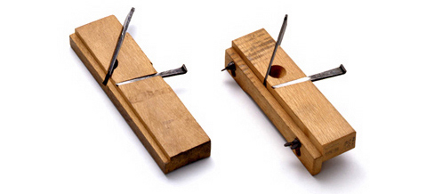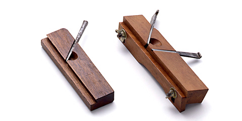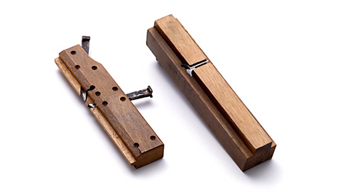 用于削细沟。在有必要的沟宽度的道路(和削沟部分的刨刃宽度一样突出的下端部分)的台子上,有可以用螺丝调节间隔的尺子,构造看起来有点机械,所以被称为。通过调节尺子,决定了沟槽的位置。刀刃宽度一般在500~5分钟左右。在机械式的东西形成之前,被称为小孔突。