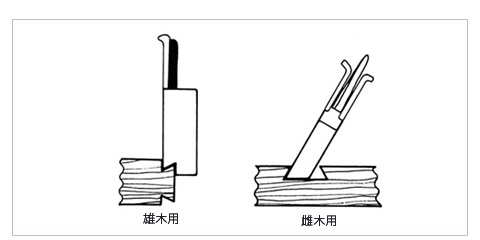 虽然构造和机械决刨几乎相同,但是没有道路的部分,从台的上部插入的生锈的前端像刀口附近像达波一样突出,作为代用。因为刨刃的后方没有道路,所以可以削掉突起(中途结束)的小孔等(图2)。刀刃宽度一般为1~3分钟。