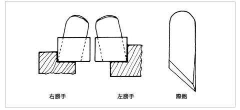 从左到右边刨(右方手)、际刨(右方手·背面)、际刨(左方手)