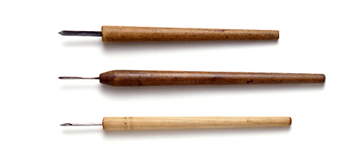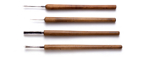 (1)三目锥:在开钉孔时使用。 (2)四方锥:用于打开木钉孔或竹钉孔。 (3)壶锥:用于打开埋木孔或粗柄孔。 (4)老鼠牙锥:在竹子等上打孔时使用。
