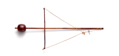 舞锥在心棒的前端戴着锥尖,在其上部有一辆剪刀车。在心棒的上端通过绳子,连接通过心棒的手臂木的两端。由于三角形上的绳子的缠绕作用,使手臂木上下旋转锥子开个洞。