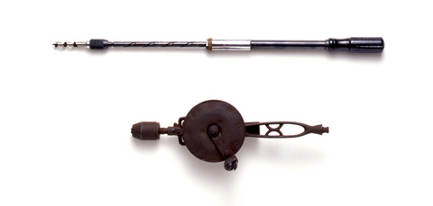 手钻是通过转动方向盘使齿轮旋转,使锥尖旋转开孔。