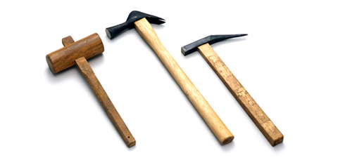 木槌用于从饱刃台中取出。拔出饱刃的时候敲打抬头,放入的时候轻轻敲打刨刃的头。按照相同的要领,对饱刃进行微调。