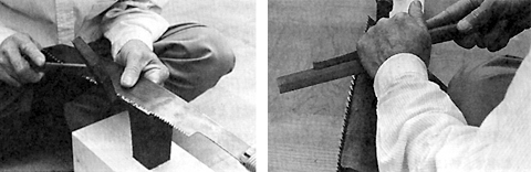 锯齿在使用的时候牙尖会磨损,锋利度会变差,所以有时必须研磨牙尖。这项工作被称为诱饵。要显眼的话,首先要修改锯齿状的歪斜,拿出蛤蜊后再进行研磨。锯身的歪斜是在金床上放上锯齿,用刃槌敲打后重新开始。