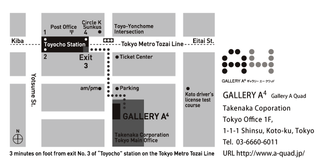 Venue | GALLERY A4 (Takenaka Coporation Tokyo Office 1F, 1-1-1 Shinsu, Koto-ku, Tokyo) |