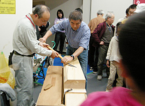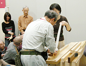 在北村技能员的解说和表演之后,参加者们也体验了堂木匠的技能。