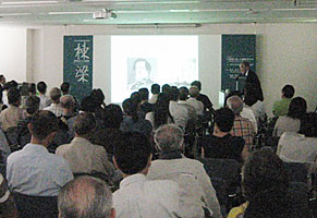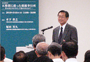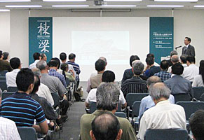 竹中大工道具馆赤尾馆长向全国4个会场举办了开馆25周年纪念巡回展,札幌的举办是继东京之后的第2个会场,对纪念演讲会有很多人出席表示感谢后,介绍了2名讲师的简历。